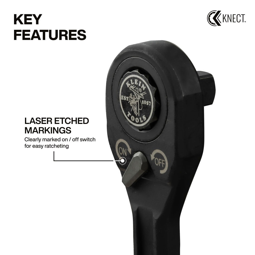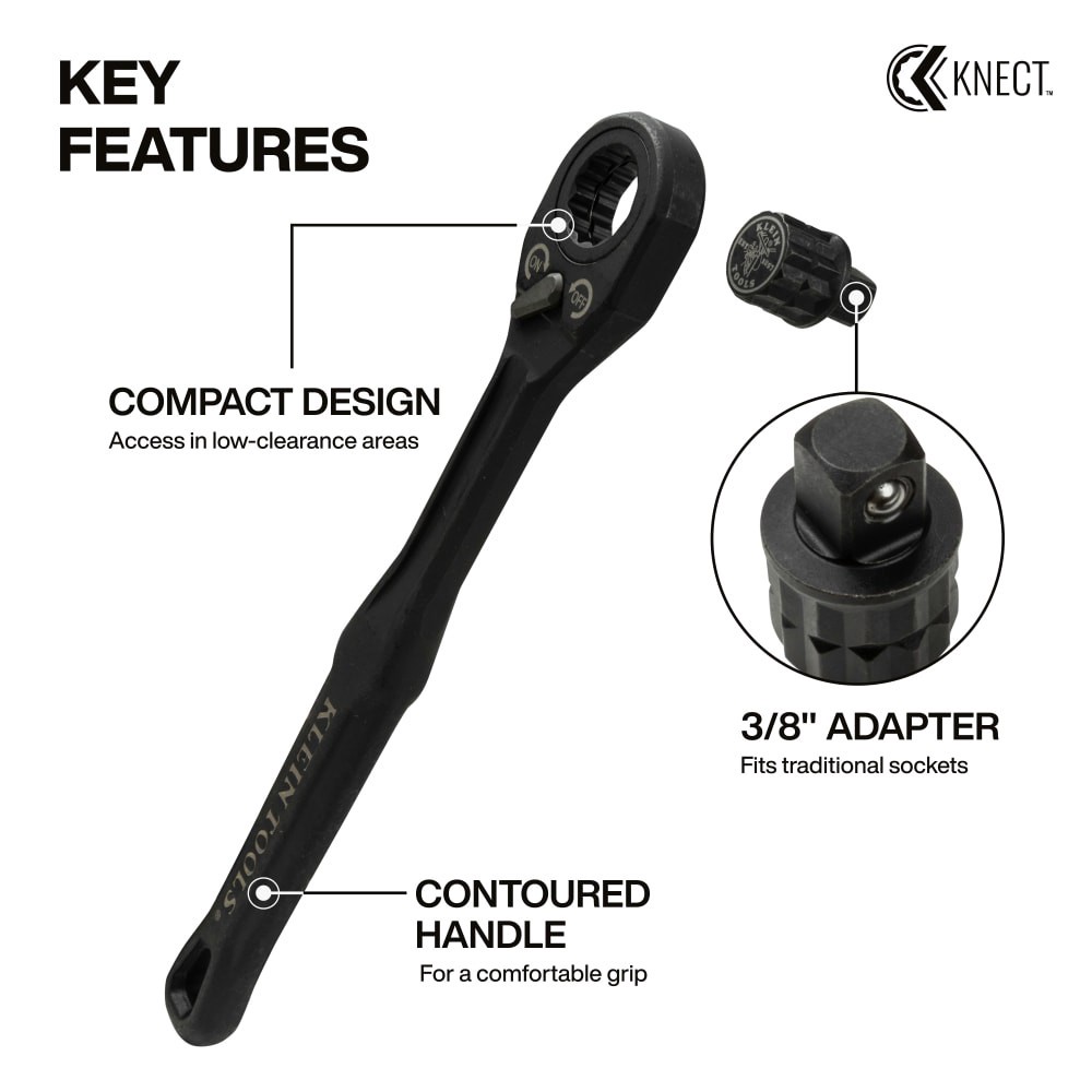 Klein Tools KNECT (M) Pass Through Ratchet and 3/8-Inch Drive Socket Adapter Set