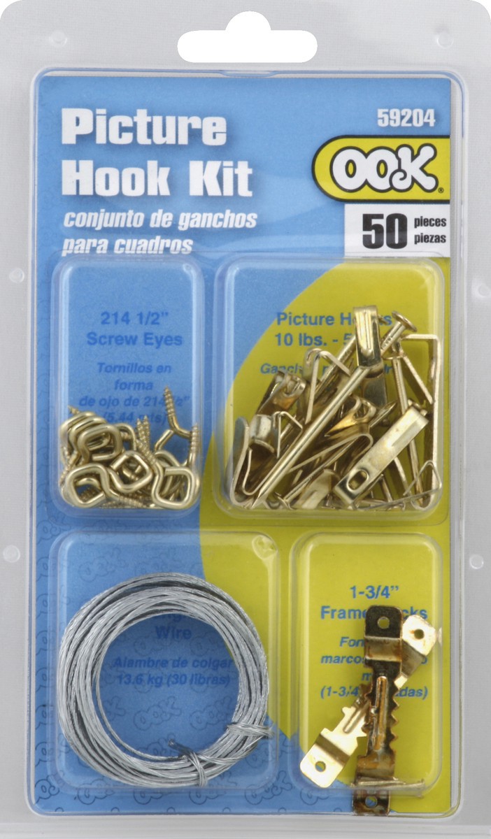 This Package Contains: 10 picture hooks; 2 sawtooth hangers; 17 nails; 1 coil of picture wire; 20 screw eyes. www.ooks.com. Packed in China using parts manufactured in one or more of the following cou…