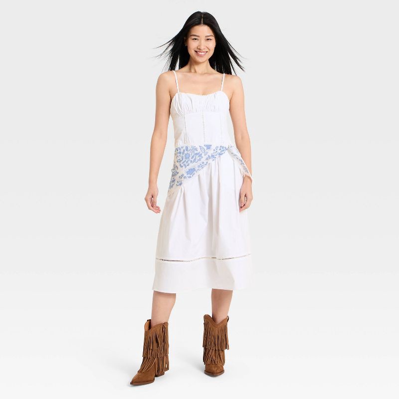 Step up your fashion game with this Corset Midi Dress from A New Day™. Made of 100% cotton fabric and lining, this midi dress keeps you cool and comfy all day. It features a corset bodice and boasts l…