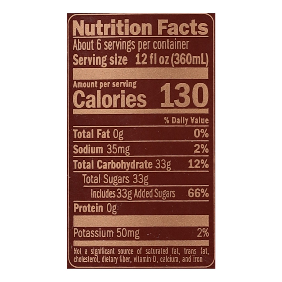 Carbonated Water, High Fructose Corns Syrup, Caramel Color, Potassium Benzoate (Preservative), Natural and Artificial Flavors, Sucralose.