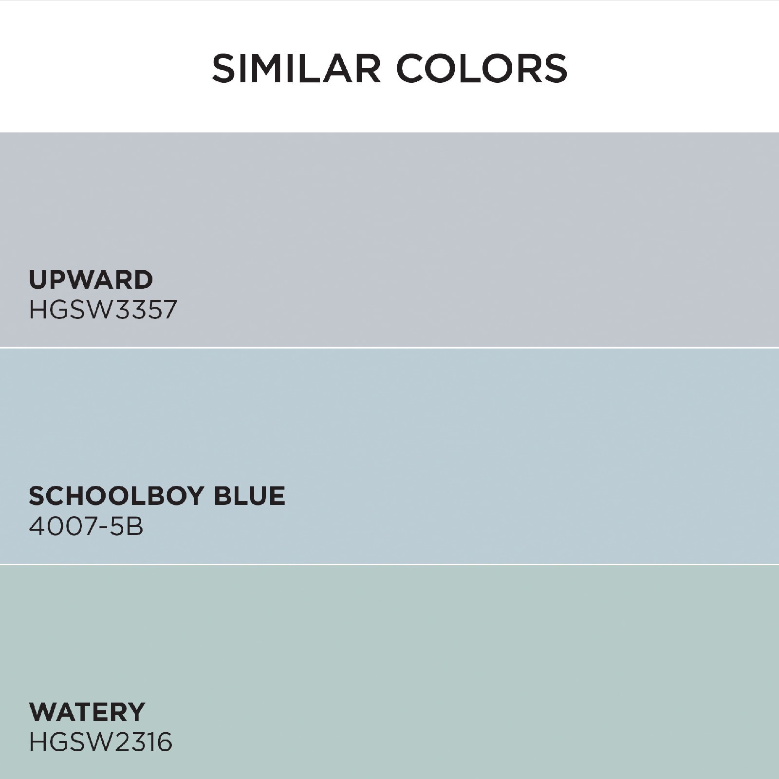 A light, pastel blue with a muted indigo undertone. Eggshell finish is a versatile choice for most rooms, especially for spaces that may require frequent touchups. One-coat coverage. Colors stay true …
