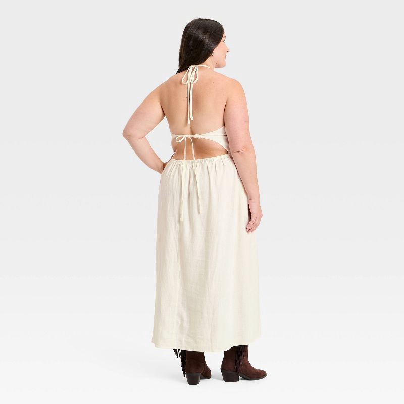 - Halter neckline with behind-tie closure