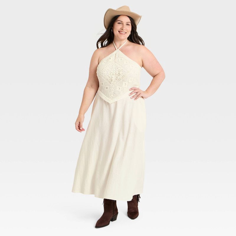Women's Embroidered Skater Dress - A New Day™ Cream XXL