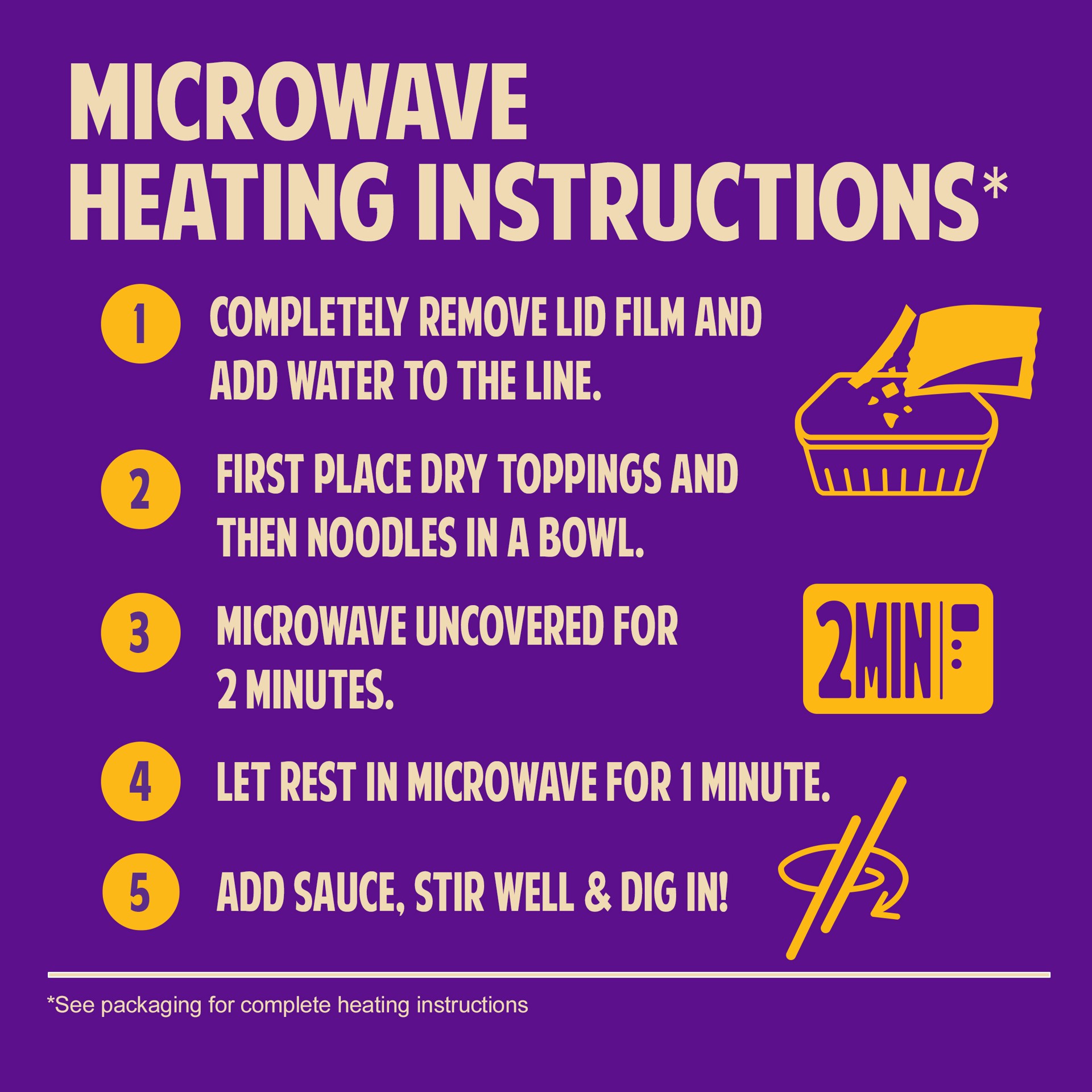 - Convenient microwaveable bowl for tasty warm noodles any place, any time