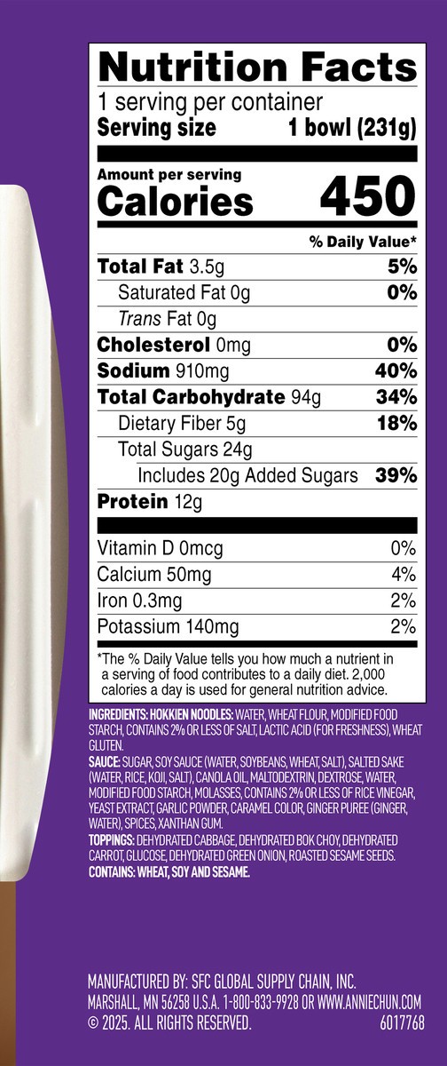 - One 8.16 oz. Annie Chun''s Teriyaki Noodle Bowl