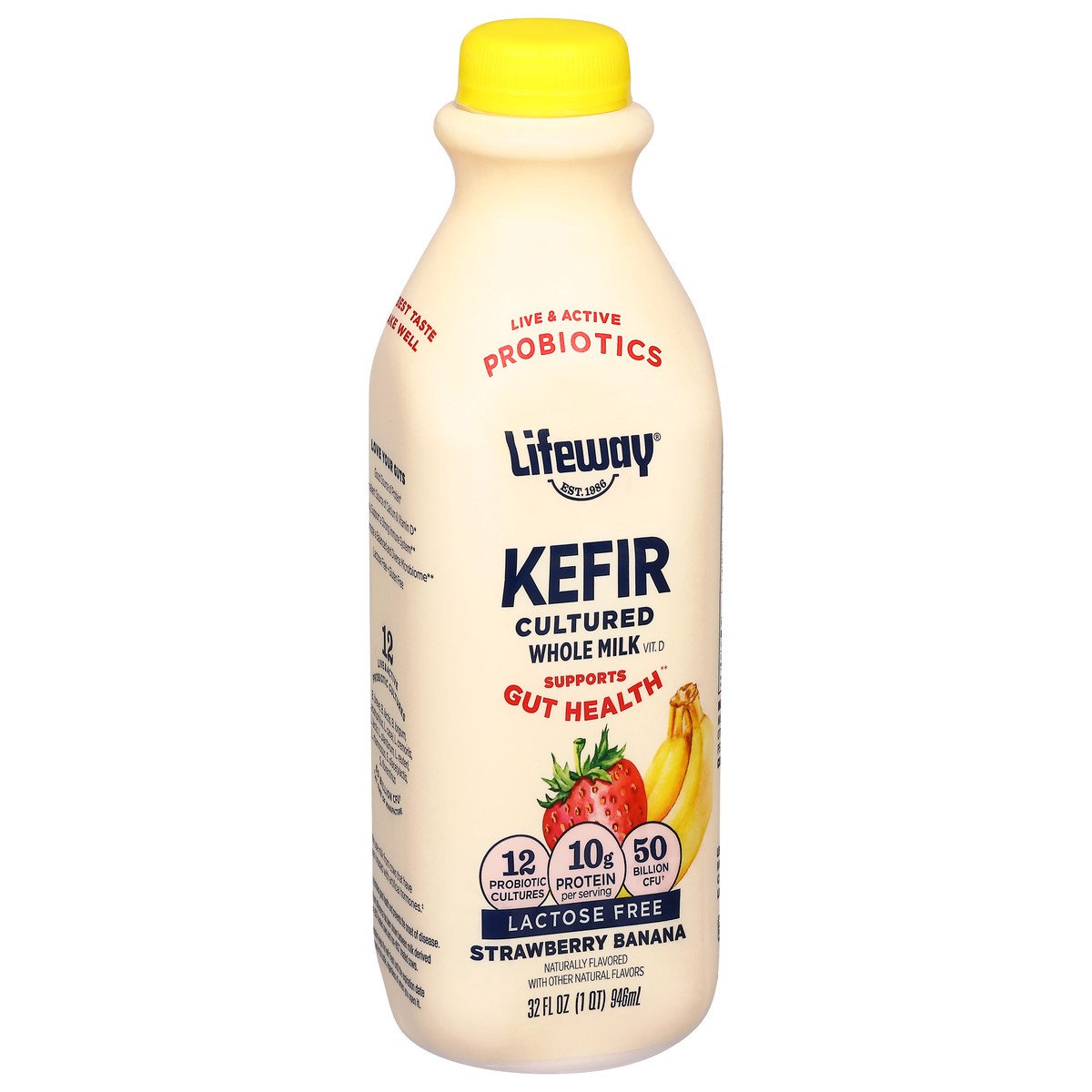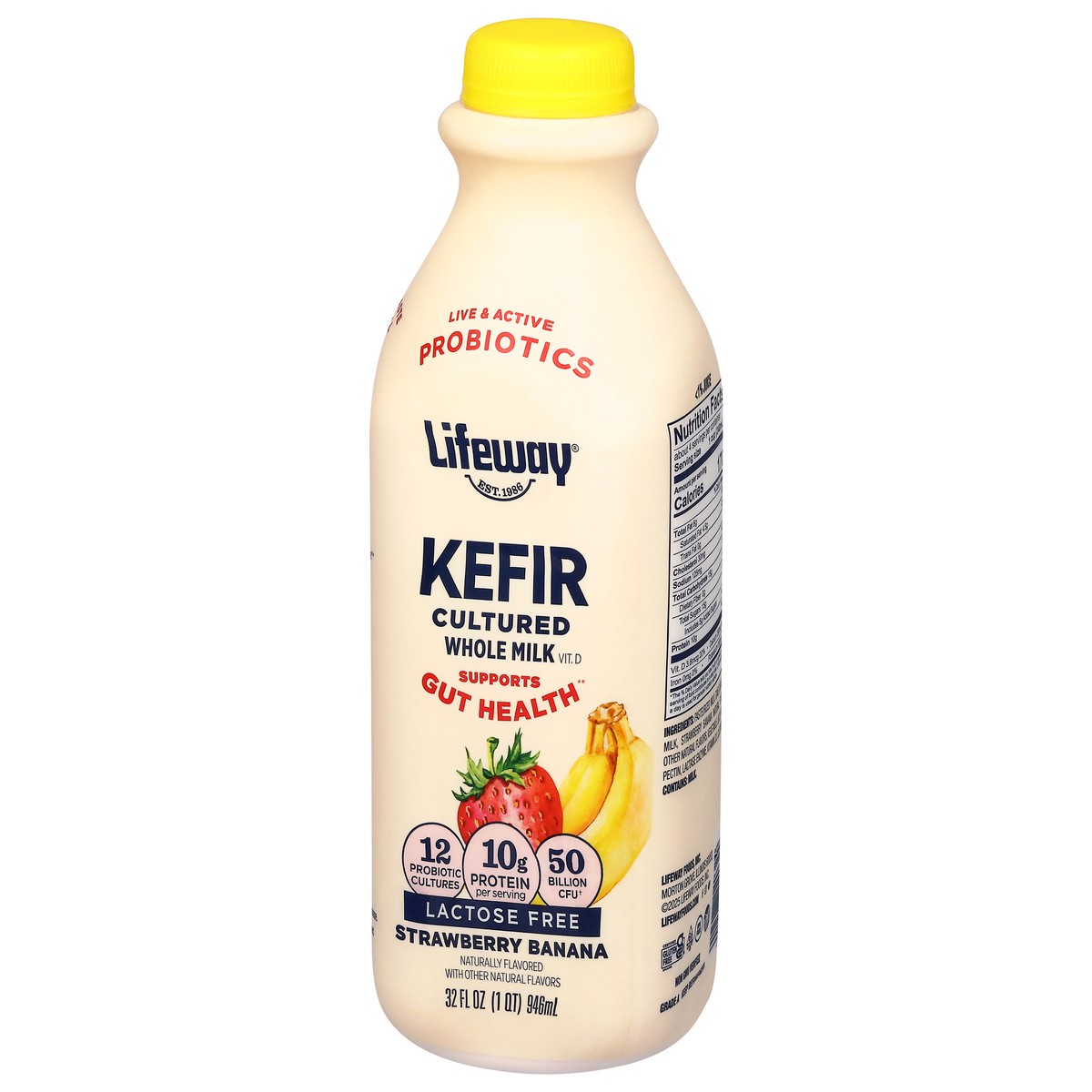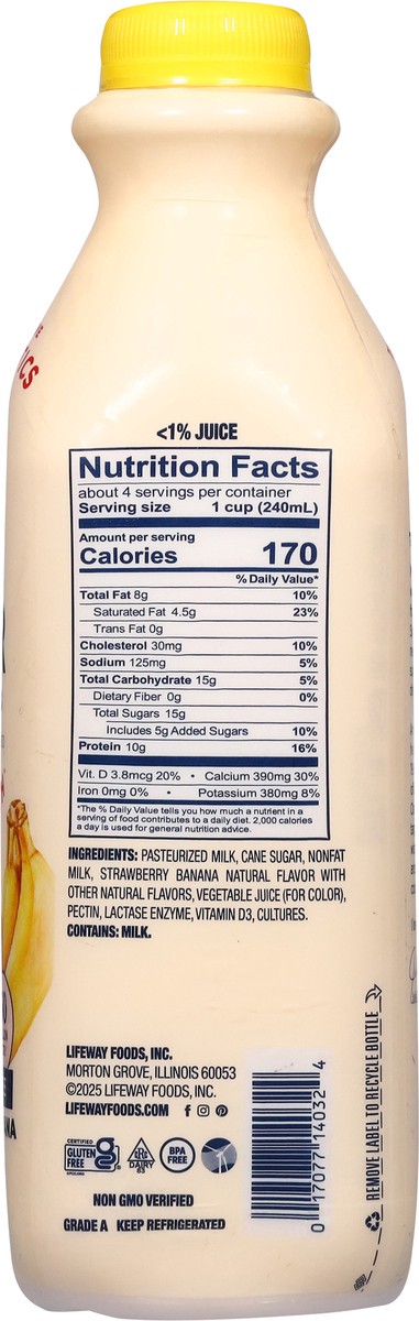 Lifeway Lactose Free Cultured Whole Milk Strawberry Banana Kefir 32 fl oz
