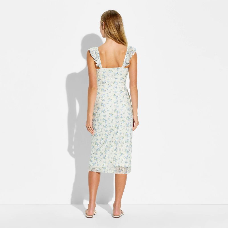 Women's Ruffle Sleeve Midi A-Line Dress - Wild Fable™ Cream Floral S