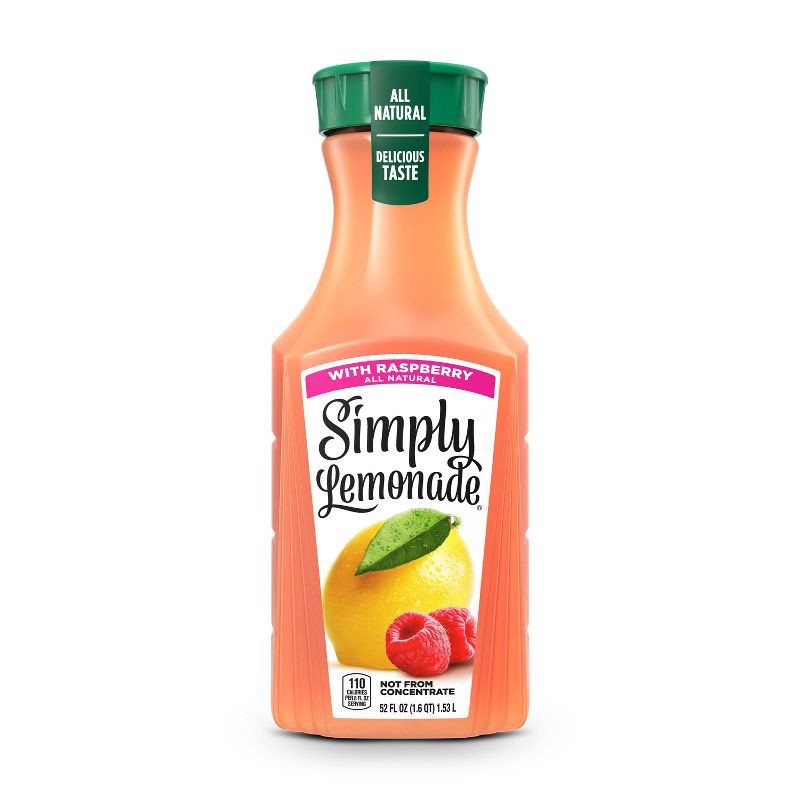 - 52 fl oz bottle of Simply Lemonade with Raspberry in a signature Simply carafe with distinctive cap and tear strip