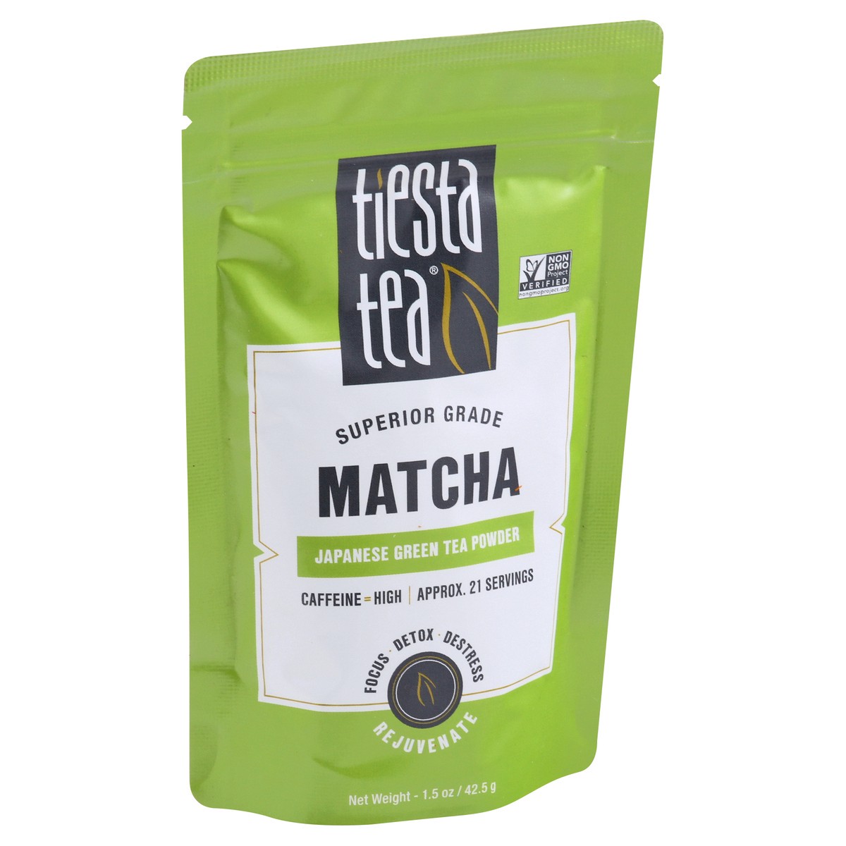 Japanese green tea powder. Non GMO Project Verified. nongmoproject.org. Caffeine = high. Approx. 21 servings. Focus. Detox. Destress. Rejuvenate. Matcha is famous around the world for its variety of h…