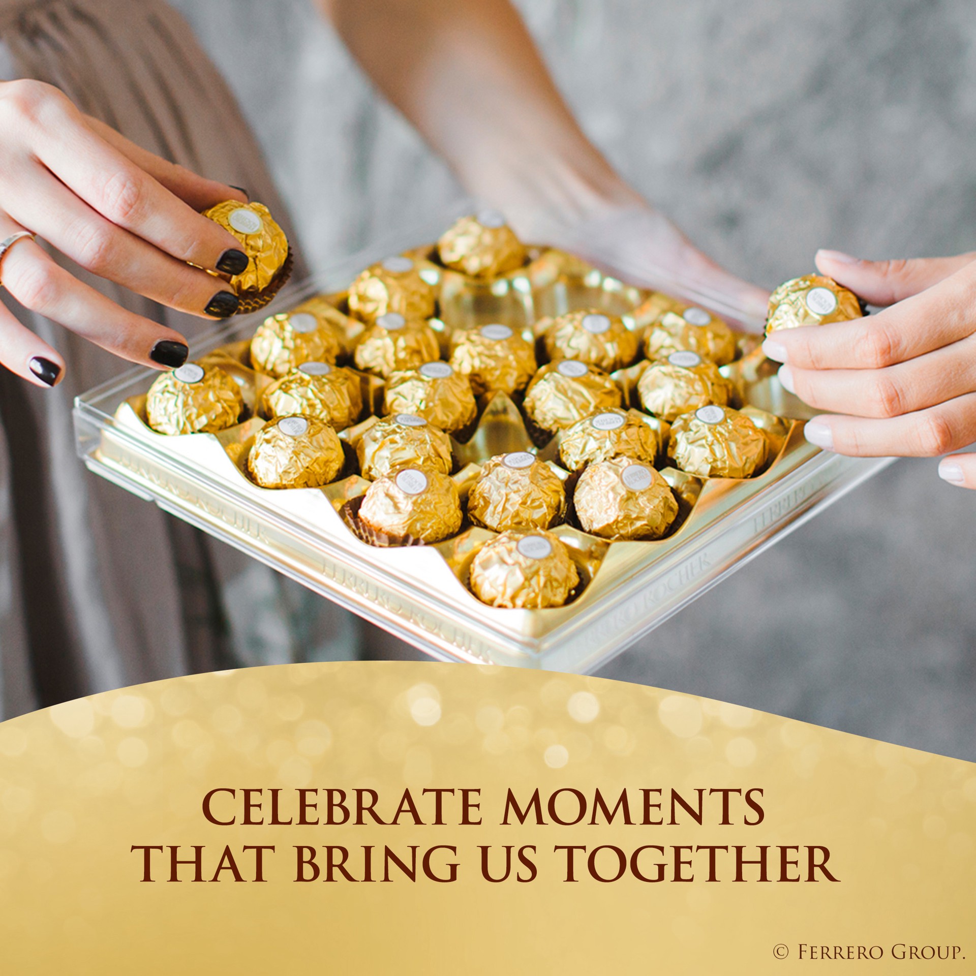 Ferrero Rocher's milk chocolate gift box offers a unique taste experience of contrasting layers: a whole crunchy hazelnut in the heart and a delicious, creamy hazelnut filling surrounded with milk cho…