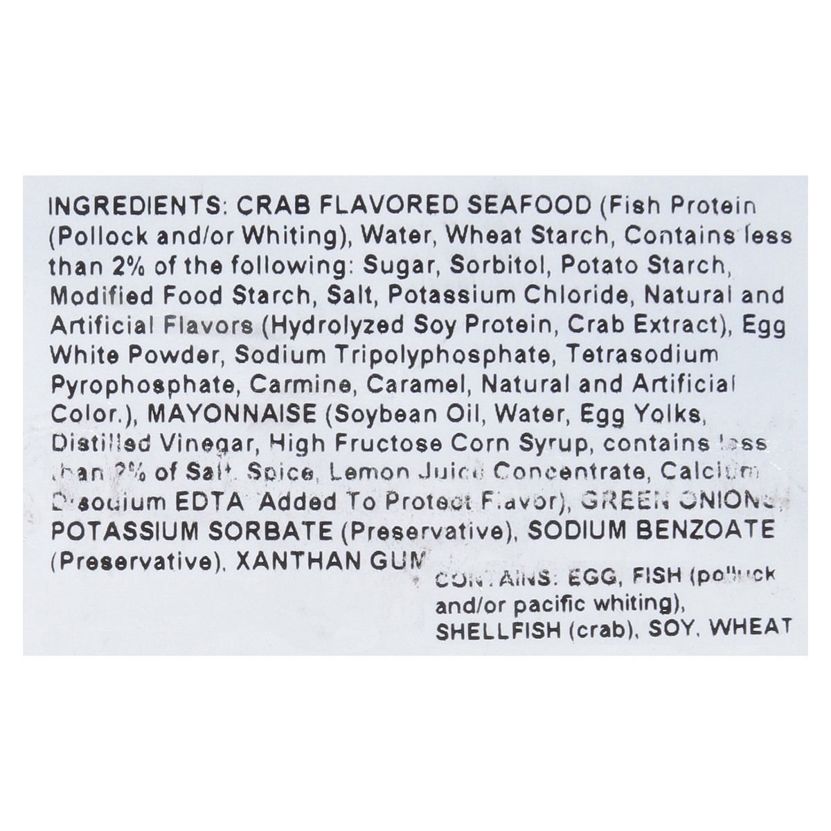 Crab Flavored Seafood (Fish Protein (Pollock and/or Whiting), Water, Wheat Starch, Contains Less than 2% of the Following: Sugar, Sorbitol, Potato Starch, Modified Food Starch, Salt, Potassium Chlorid…