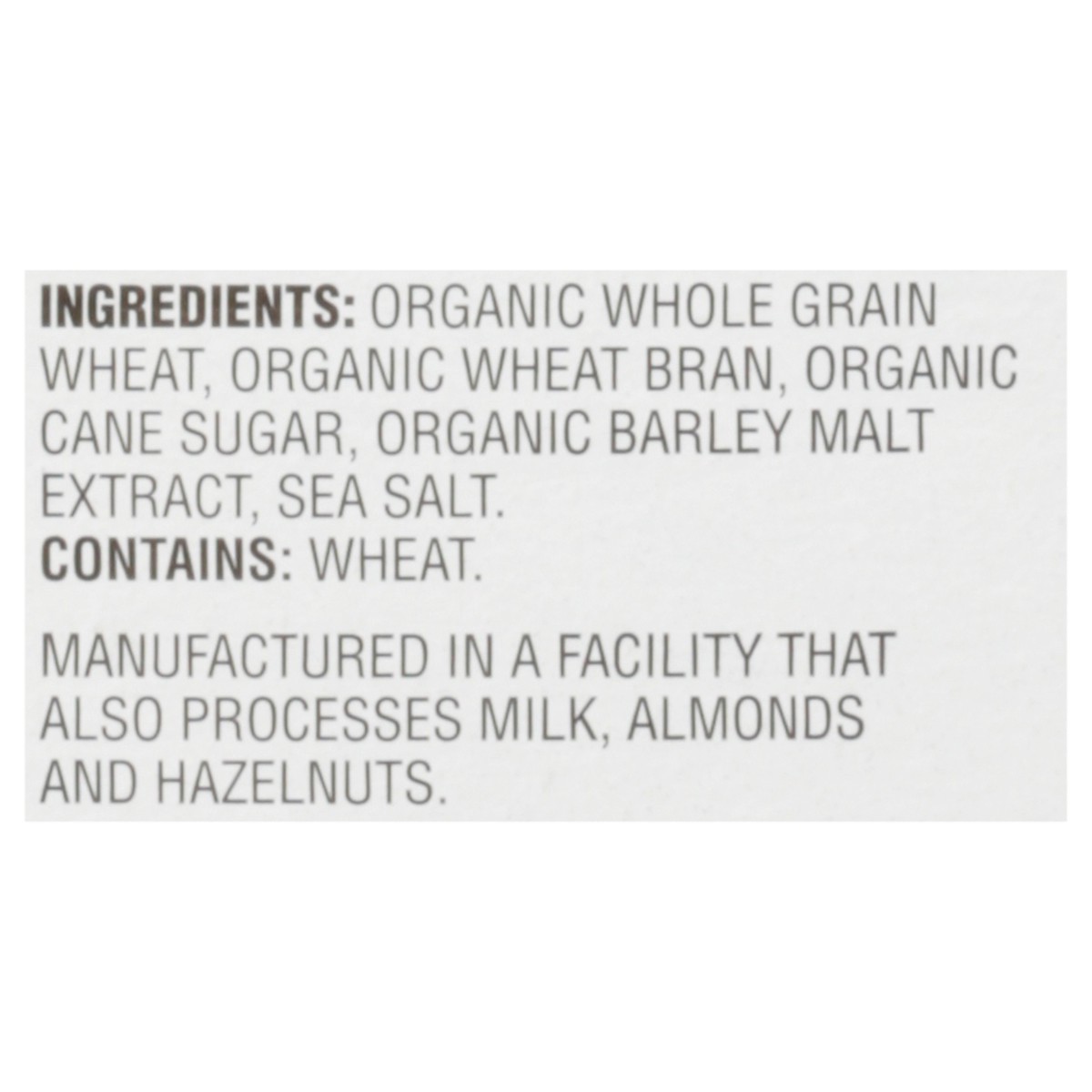 Organic Whole Grain Wheat, Organic Wheat Bran, Organic Cane Sugar, Organic Barley Malt Extract, Sea Salt.