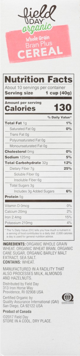 Field Day Organic Whole Grain Bran Plus Cereal 14 oz