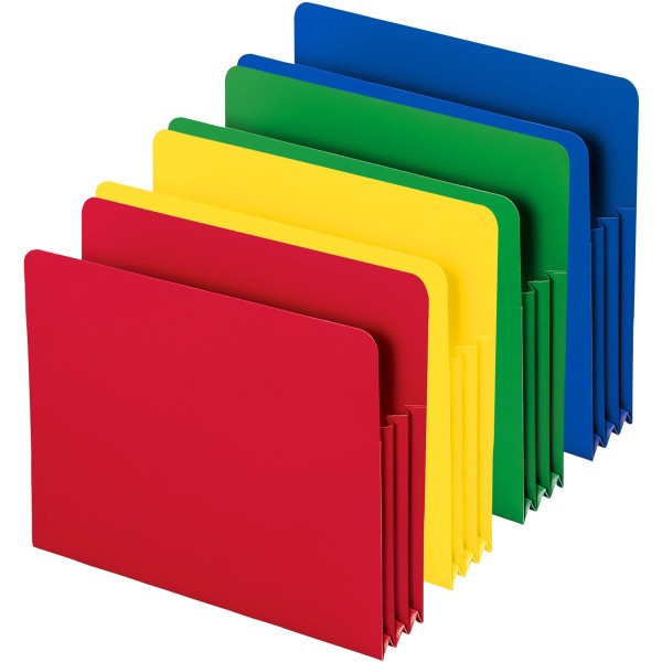 slide 1 of 5, Smead® Poly Expanding File Pockets, 3 1/2"" Expansion, Assorted Colors (No Color Choice), Pack Of 4, 4 ct