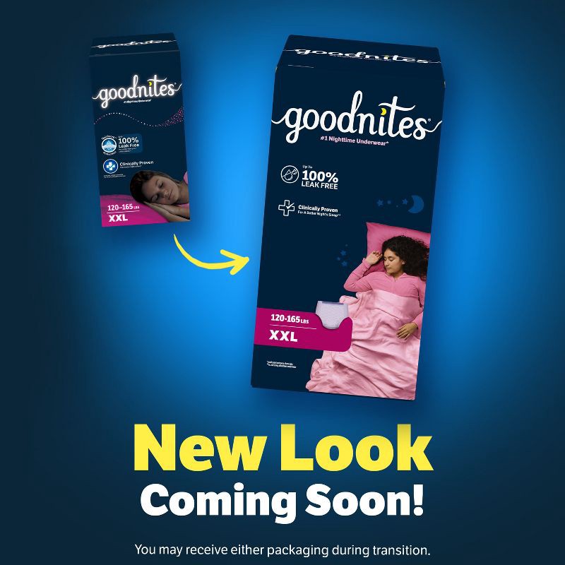 - Goodnites Girls' Nighttime Bedwetting Underwear: 24 overnight underwear for girls, size XXL; fits children 120-165 lbs; New XXL size, our biggest size!