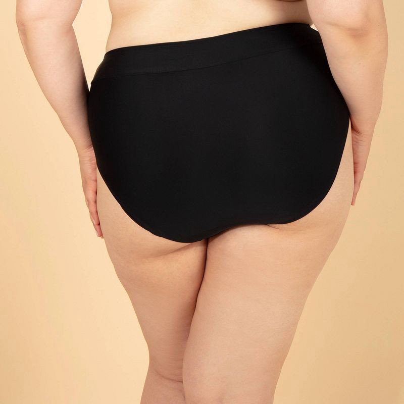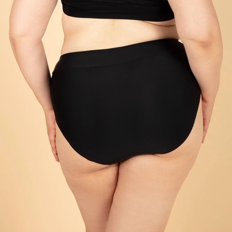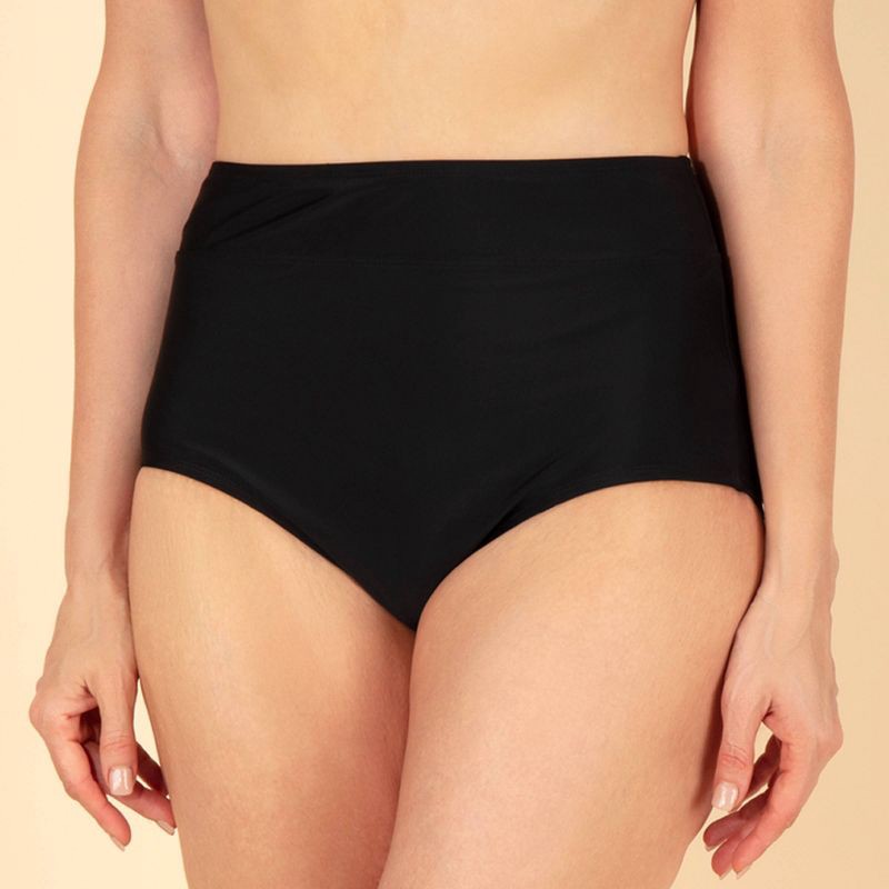 Lands' End Women's UPF High Waist Full Coverage Tummy Control Bikini Bottom - Black L