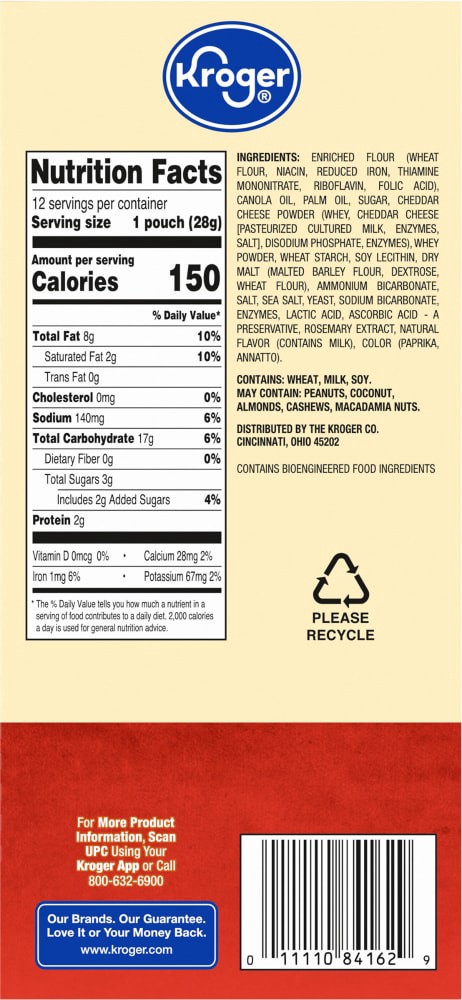 Enriched Flour ( Wheat Flour , Niacin , Reduced Iron , Thiamine Mononitrate , Riboflavin , Folic Acid ) , Canola Oil And/Or Soybean Oil , Palm Oil , Cheddar Cheese Powder ( Whey , Cheddar Cheese [ Pas…