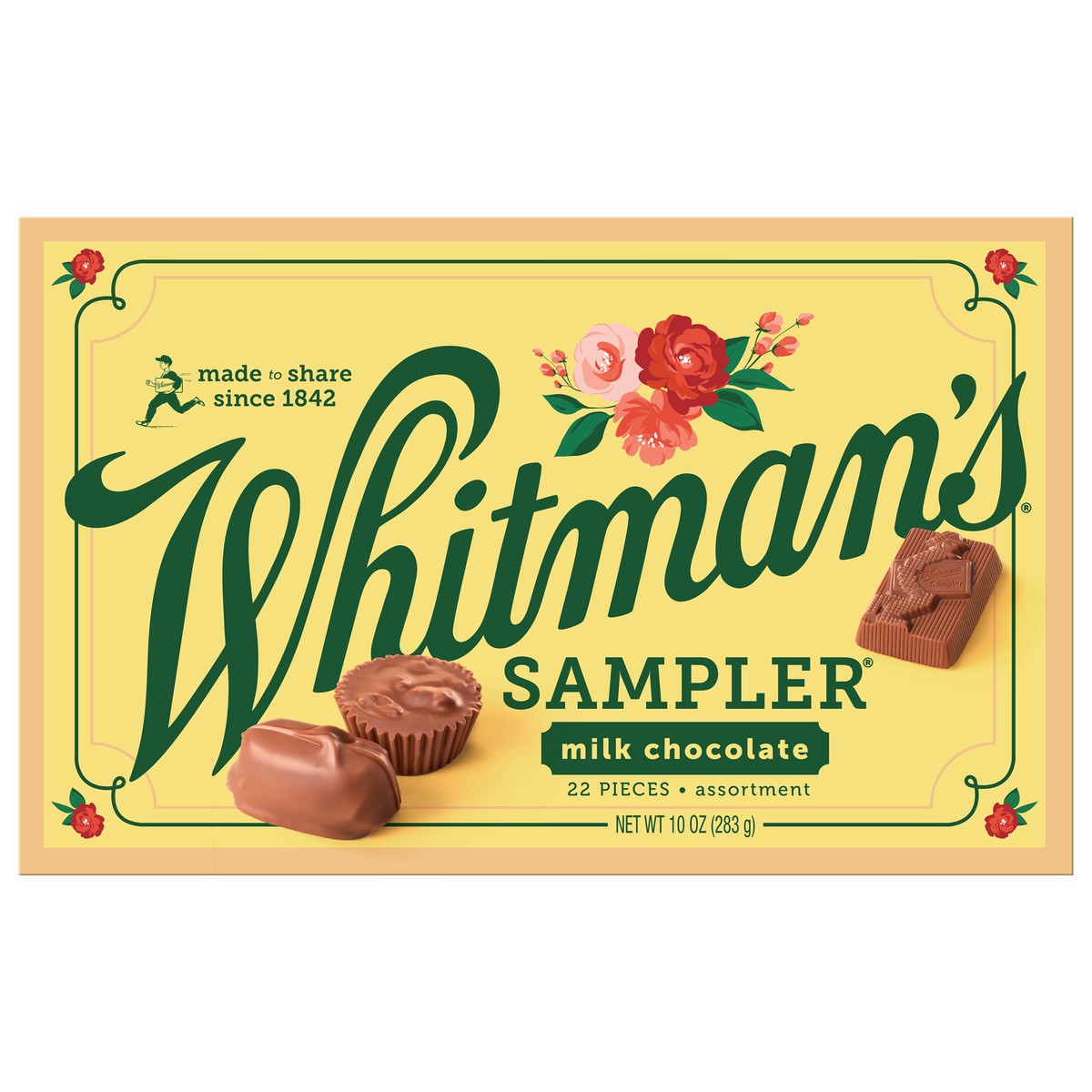 Whitman's Sampler Assorted Milk Chocolate Gift Box, 10 oz., makes a perfect gift for friends or family! Our 22 piece assortment of 11 unique flavors features: milk chocolate peanut cluster, milk choco…