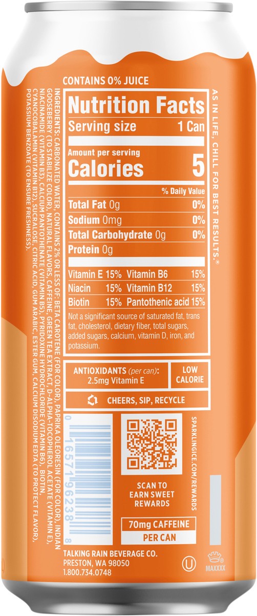 Sparkling Ice Caffeine Orange Cream A Sparkling Ice sub-brand with 70mg of Caffeine to get you though your day.