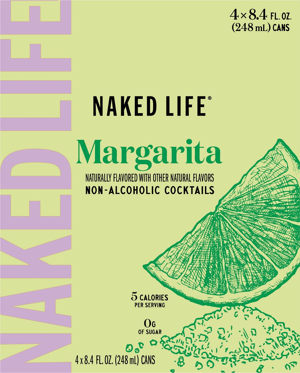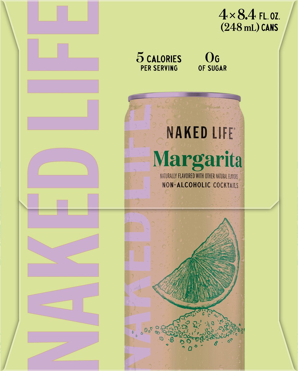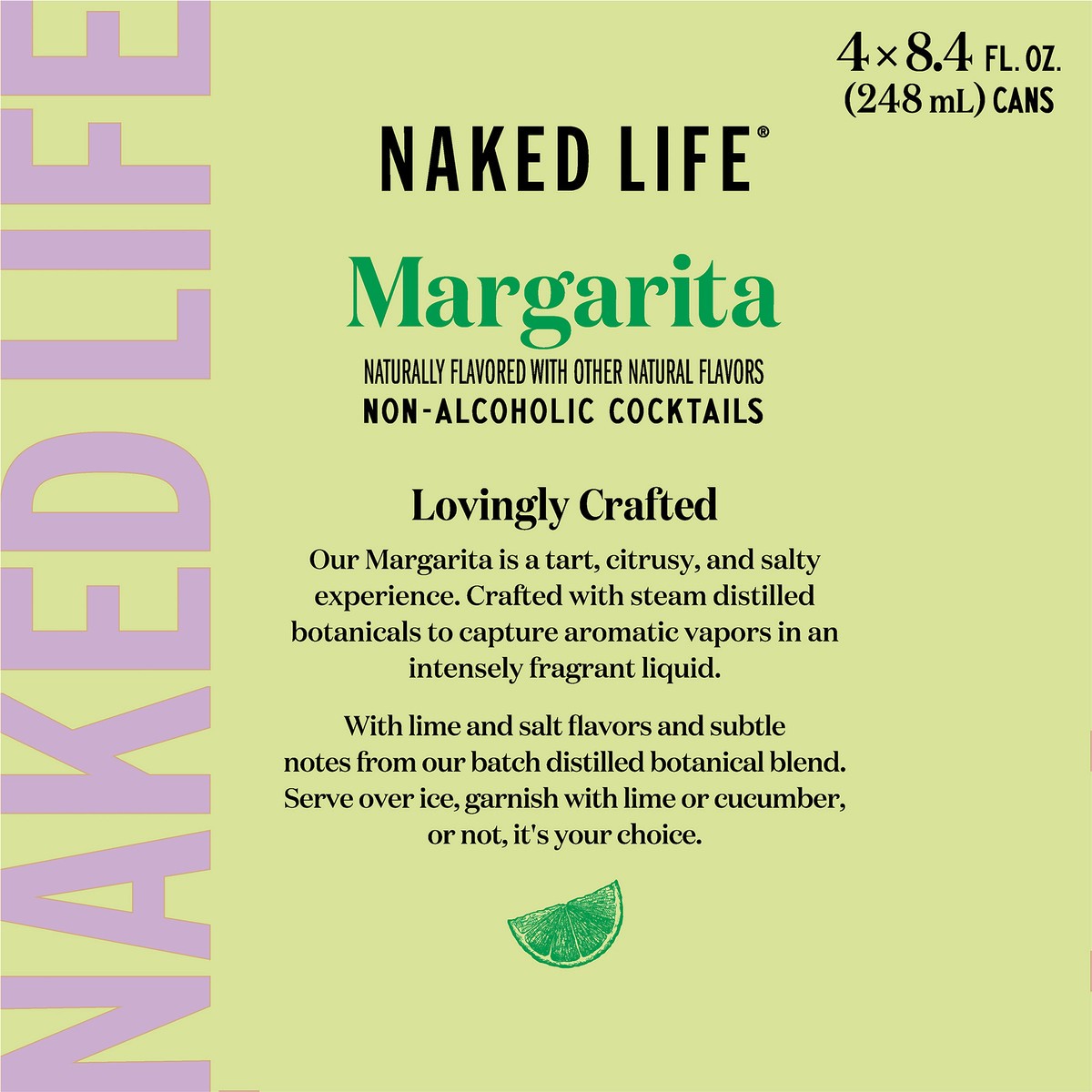 - 4 pack 8.4 fl oz cans of Naked Life Margarita Non-Alcoholic CocktailNon-alcoholic Margarita brings together lime and salt flavors with subtle notes from our batch botanical blendZero grams of sugar and 5 caloriesReady to drink straight from the can