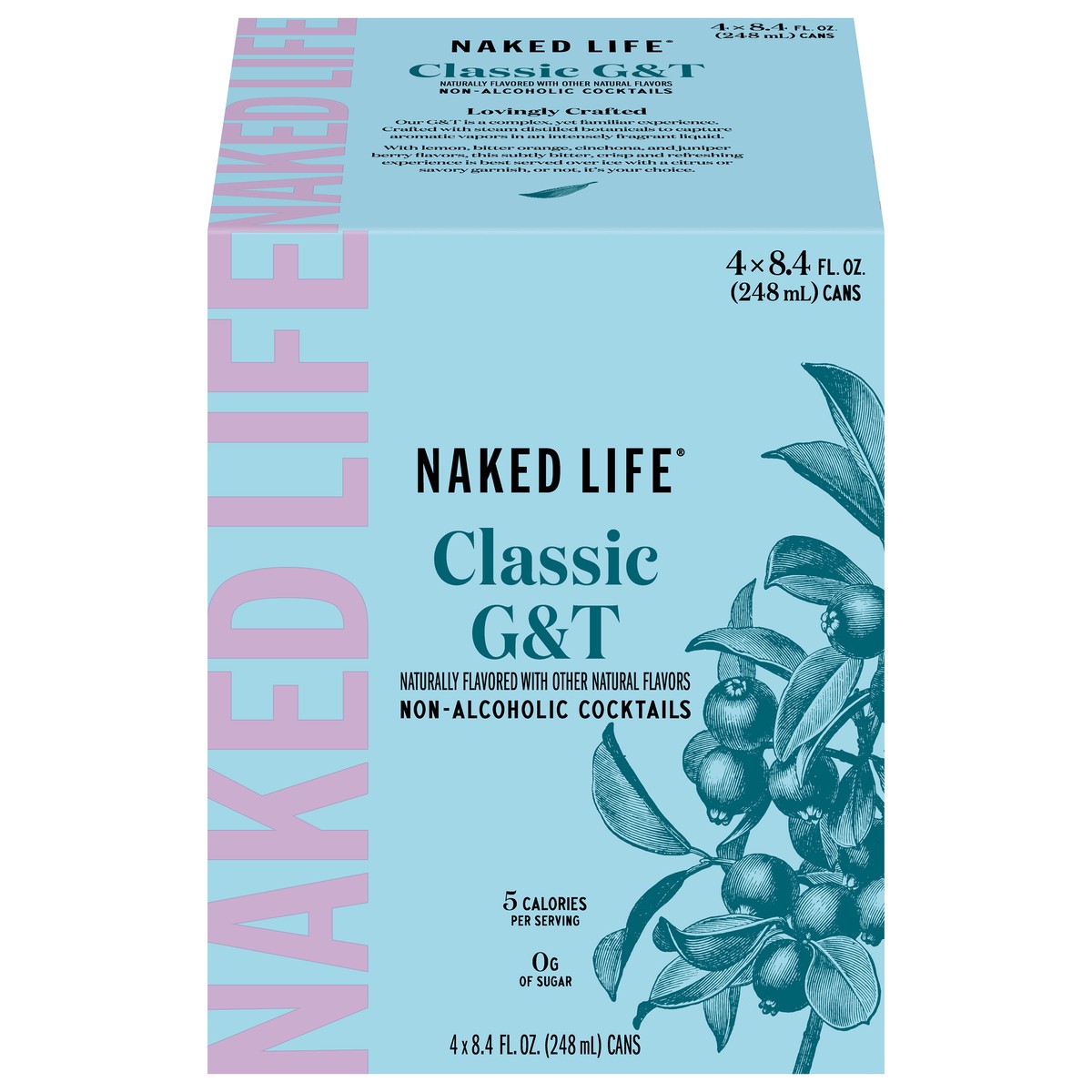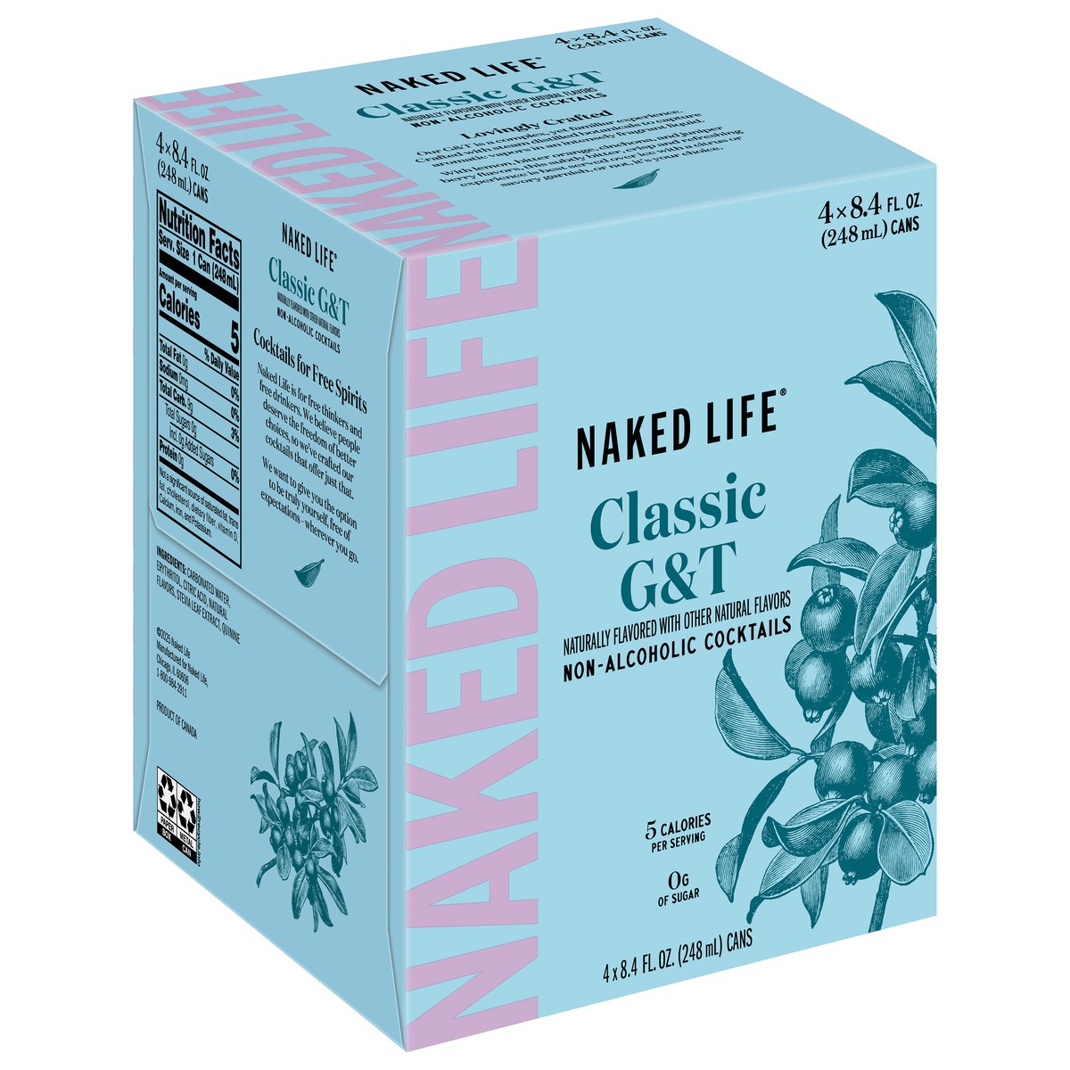 Naked Life Classic G&T NA 4pk 8.4oz Can. A line of non-alcoholic cocktails that are free from alcohol, low in sugar and calories. Crafted with distilled botanicals. Slight lemon tartness, mild bittern…