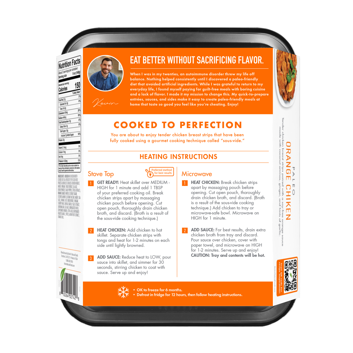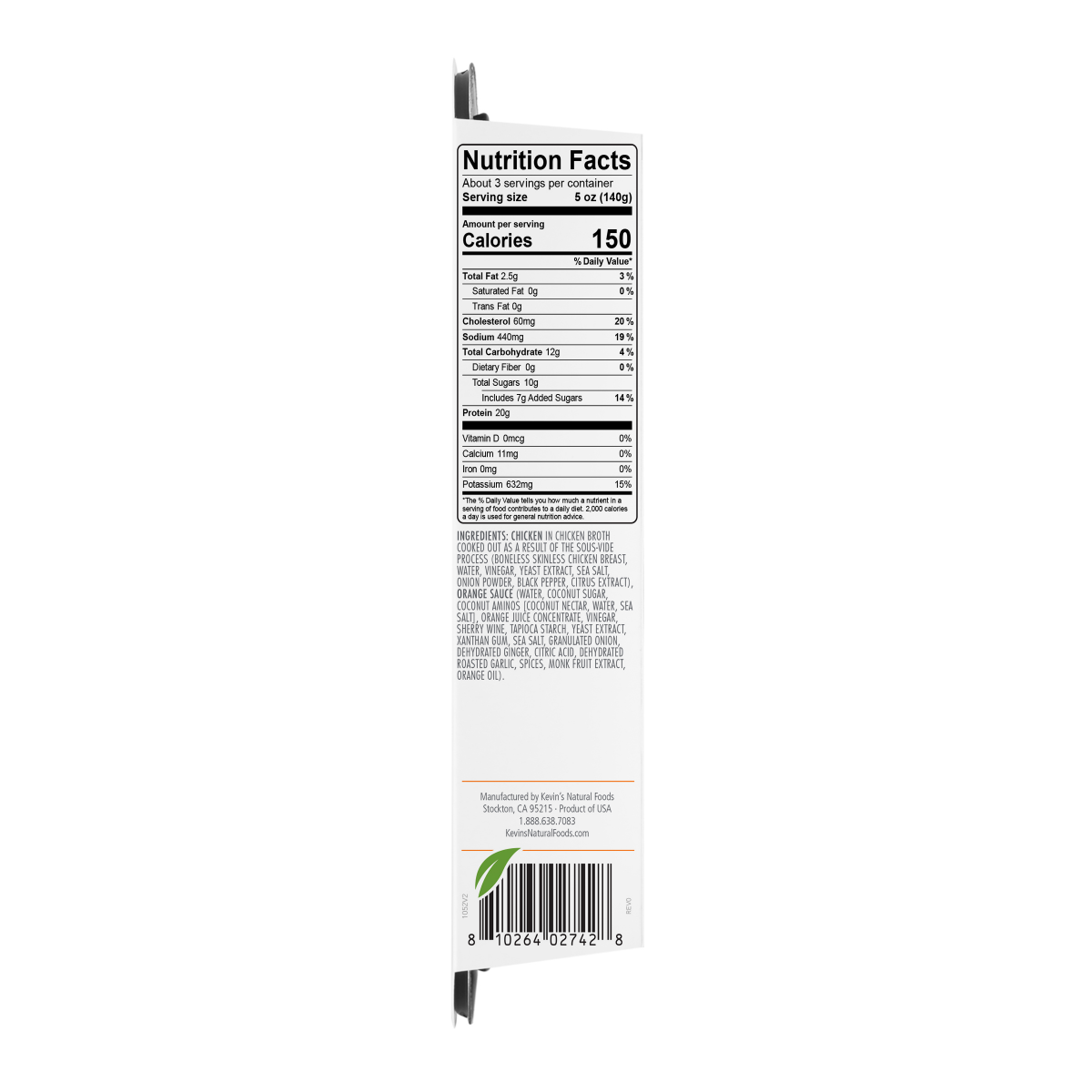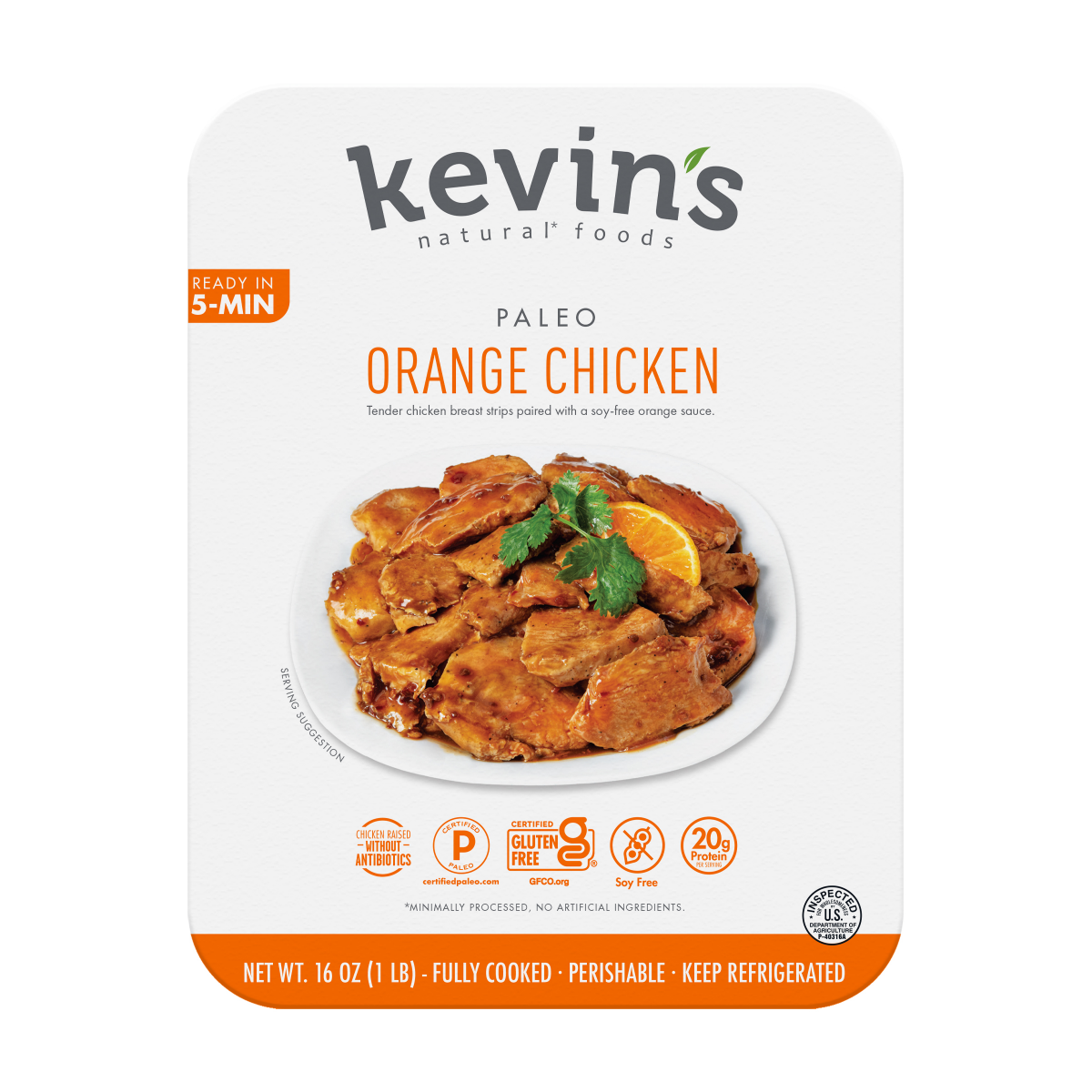 Tender Chicken Breast Strips paired with a soy-free orange sauce made with coconut aminos, ginger and hints of garlic.