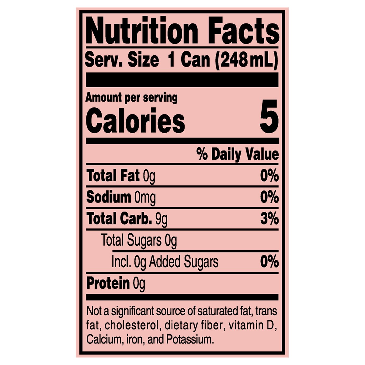Carbonated Water, Erythritol, Natural Flavors, Citric Acid, Fruit and Vegetable Juice (for Color), Stevia Leaf Extract, Quinine.