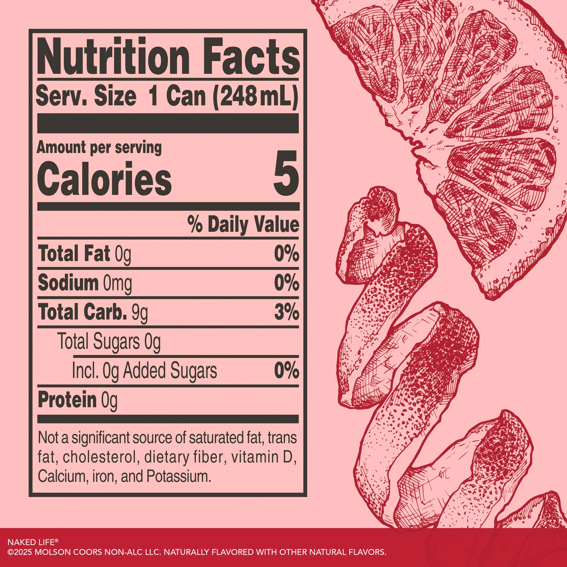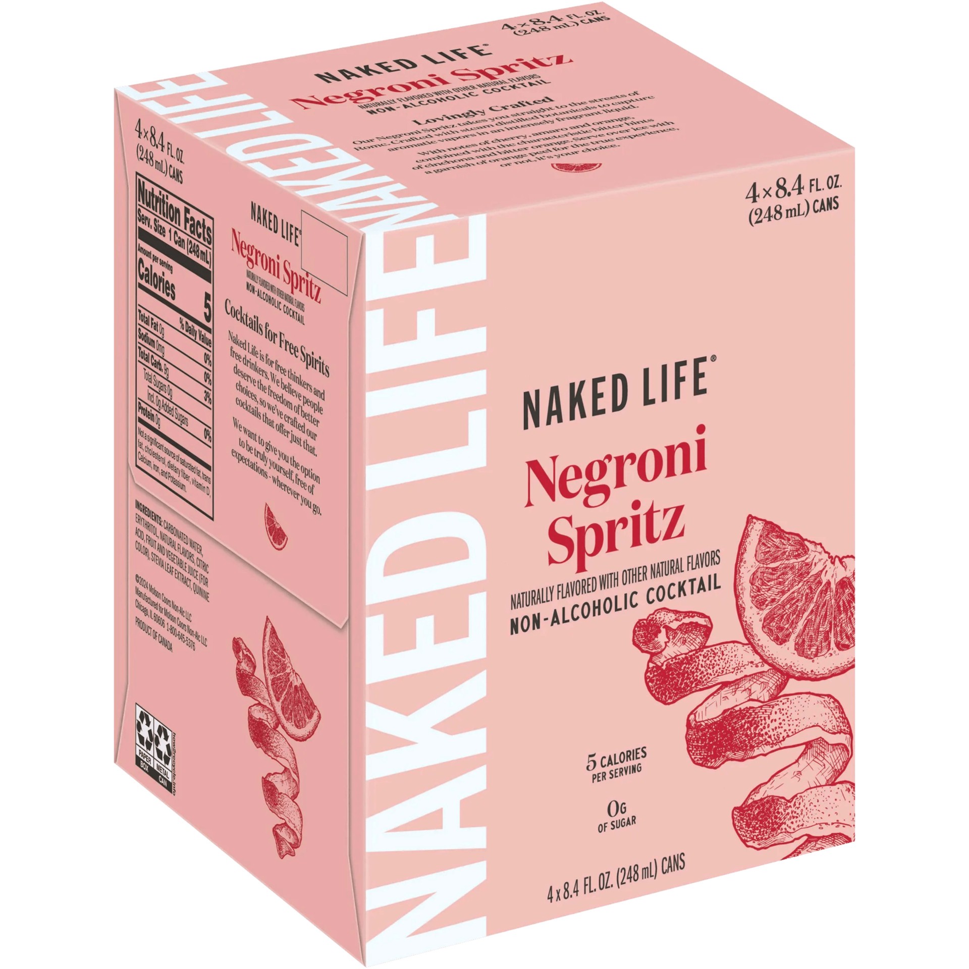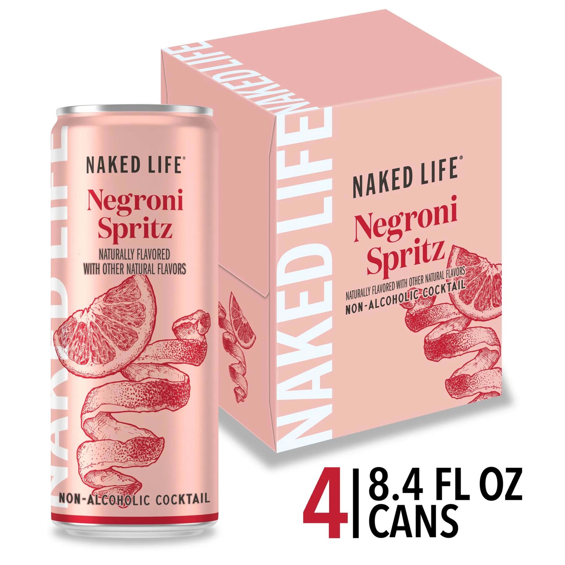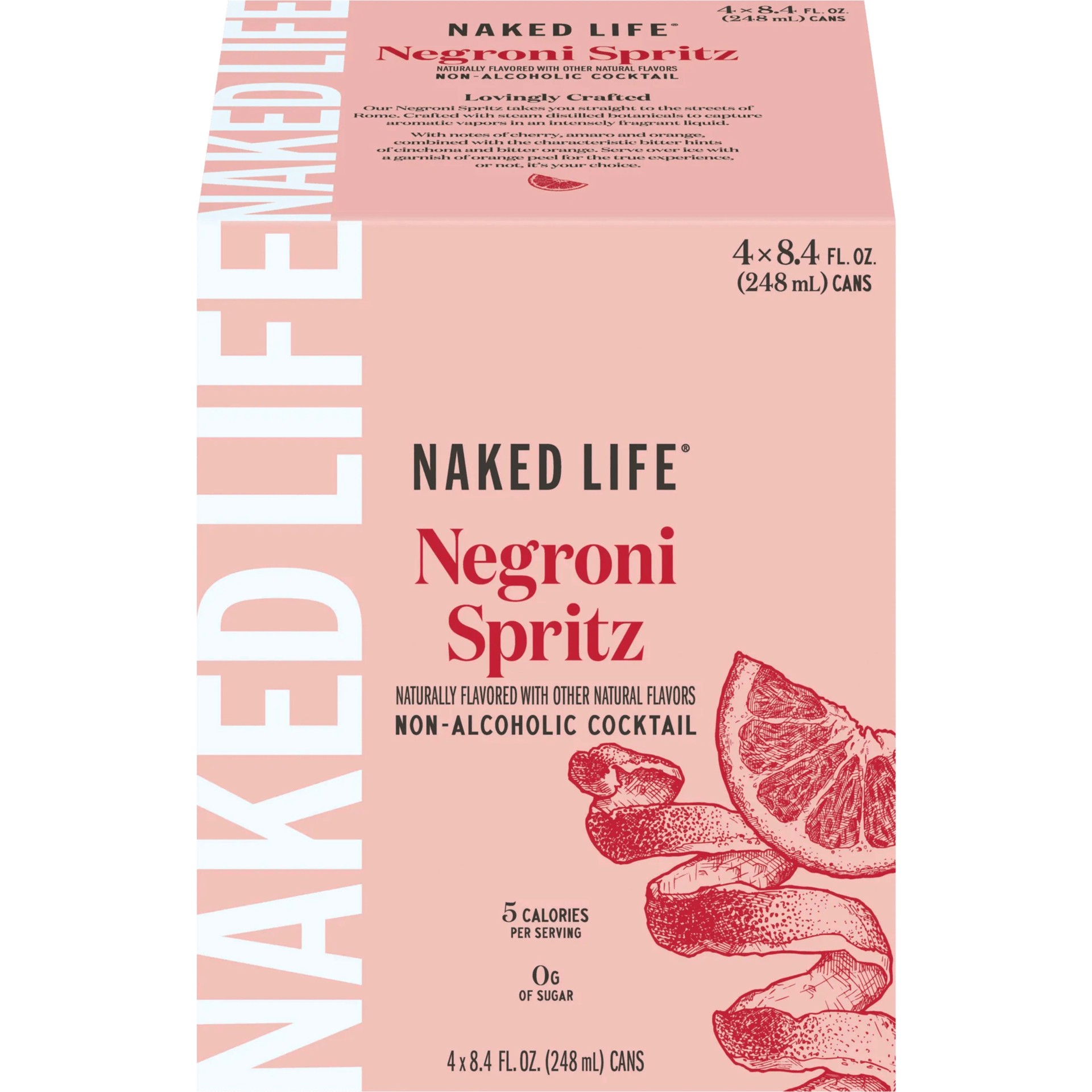 - 4 pack 8.4 fl oz cans of Naked Life Negroni Spritz Non-Alcoholic CocktailNon-alcoholic Negroni Spritz combines notes of cherry, amaro and orange with the characteristic bitter hints of cinchona and bitter orangeZero grams of sugar and 5 caloriesReady to drink straight from the can, or serve over ice with a garnish of orange peelToast to the moment on your own terms with Naked Life non-alcoholic cocktails –– try all our flavors
