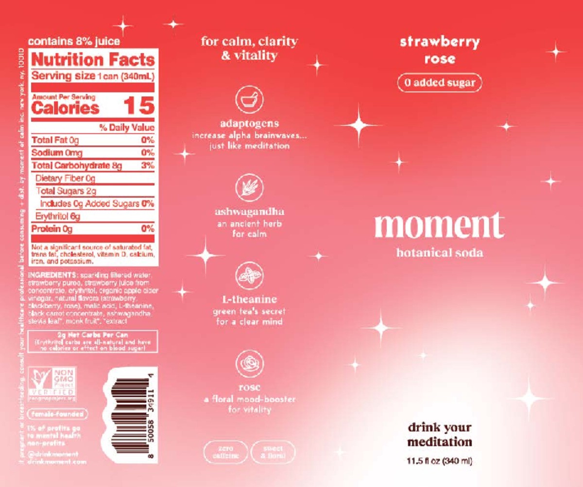Moment Strawberry Rose Sparkling Adaptogens & Botanical Drink 11.5 fl oz