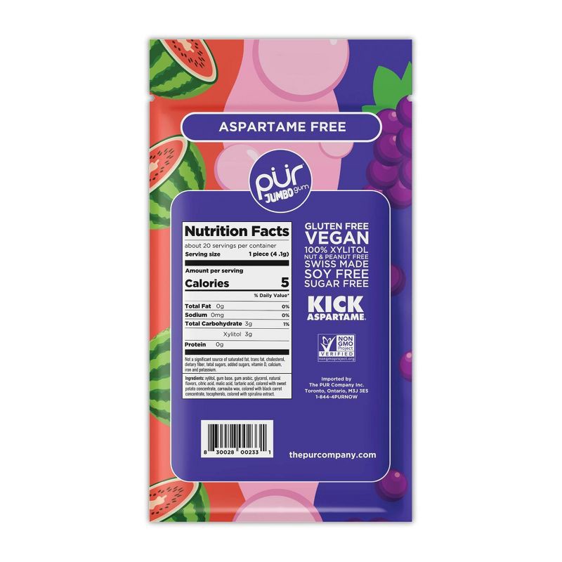 PUR Jumbo Gum Variety Grape Bubblegum Watermelon Flavor - 2.92oz