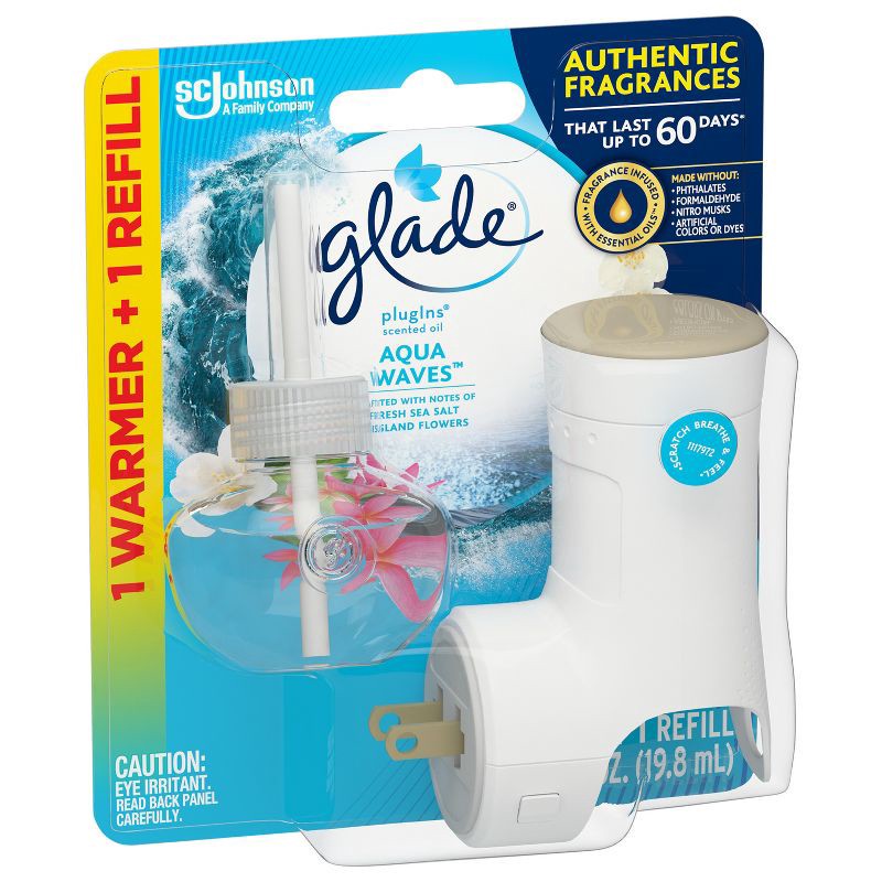 Make a splash with our Glade Aqua Waves PlugIns air freshener for home. Crafted by master perfumers with notes of sea salt, island flowers and ocean air. Make work days feel like beach days with our s…