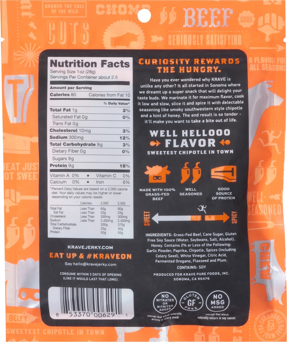 Krave Oven Roasted Sweet Chipotle Beef Cuts 2.7 oz