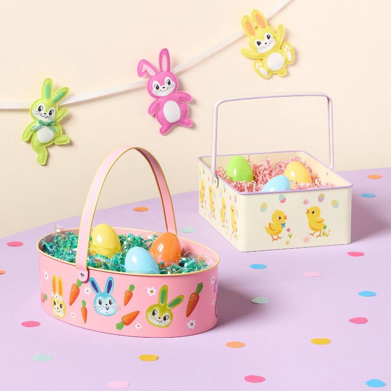 Printed Round Metal Easter Basket with Bunnies - Spritz™