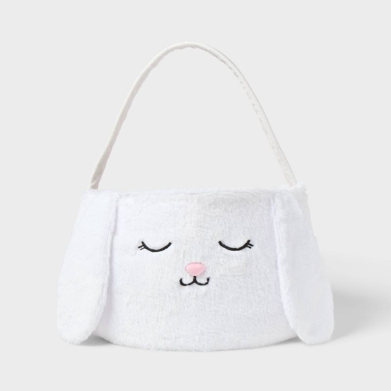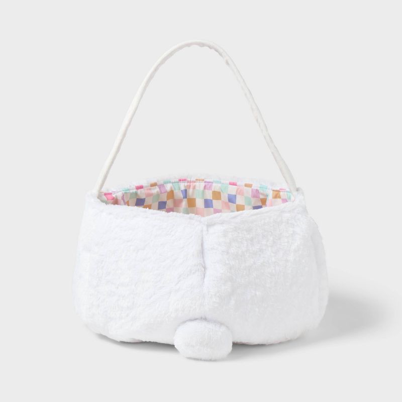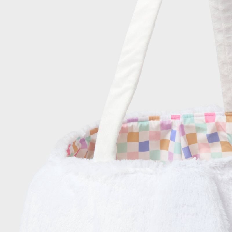 Hop into the spirit of Easter with the Easter Jumbo Plush Bunny Basket - Spritz™. This charming white basket, crafted from soft plush construction, is perfect for holding treats or small gifts. Its ro…