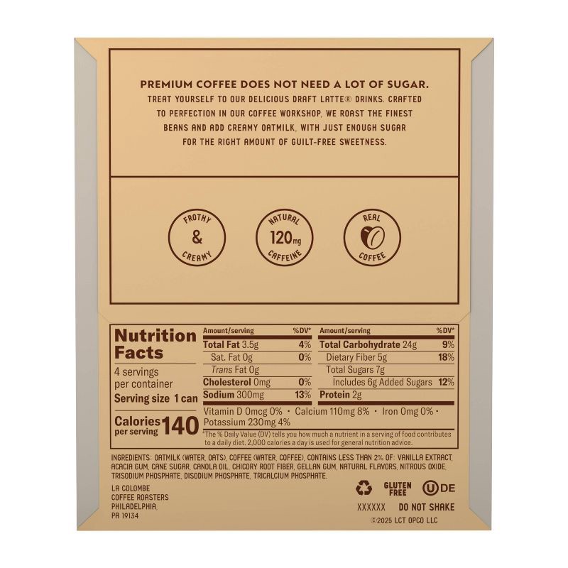La Colombe Vanilla Draft Latte with Oatmilk - 4pk/9 fl oz Cans