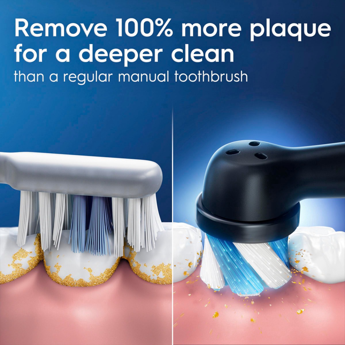 The Oral-B iO2 Electric Toothbrush combines powerful, but gentle micro vibrations with Oral-B's dentist inspired round brush head to deliver 100% cleaner teeth versus a regular manual toothbrush. So a…