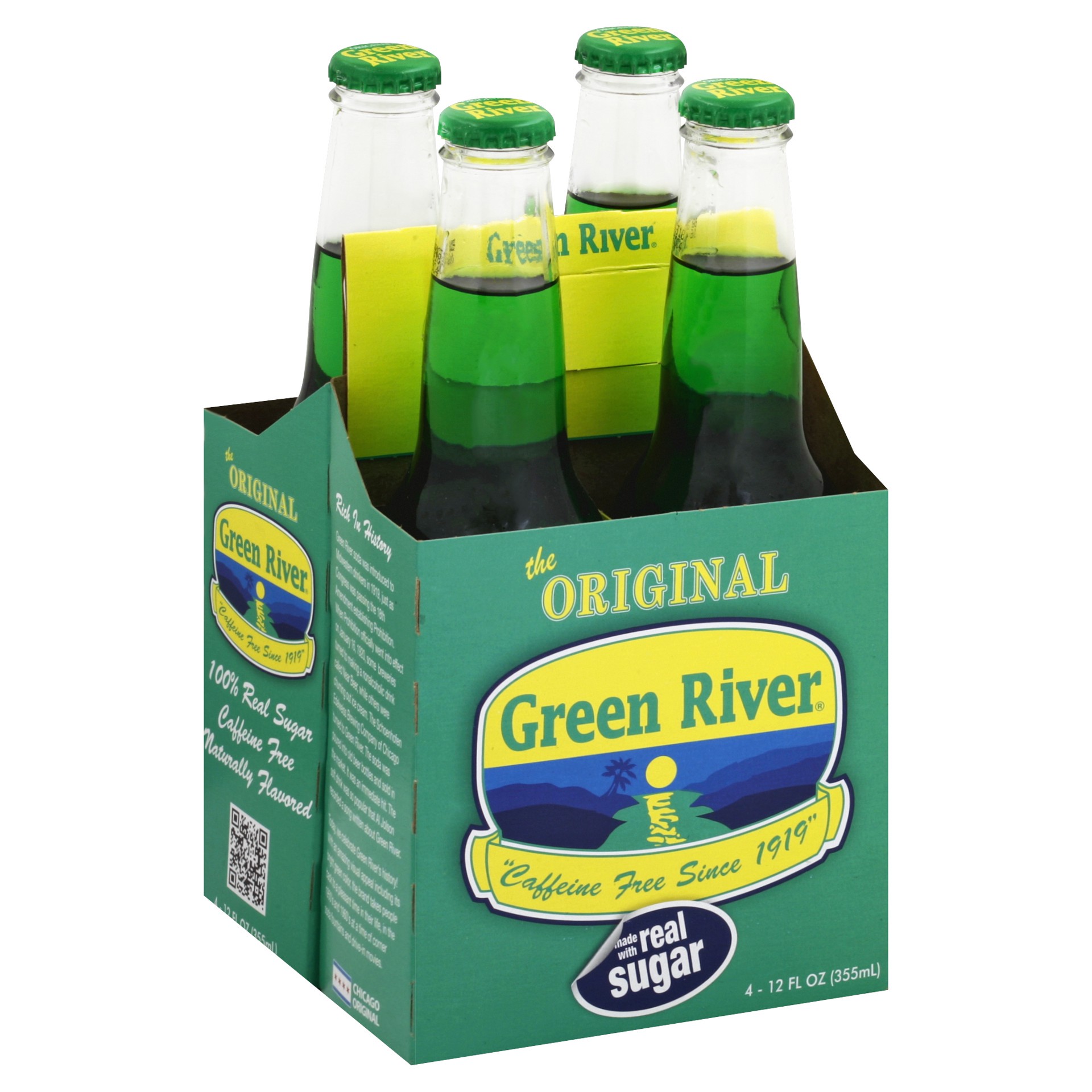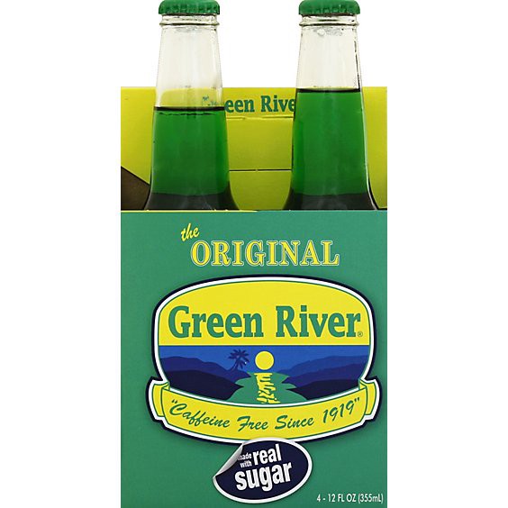 Made with real sugar. Caffeine free since 1919. 100% real sugar. Caffeine free. Naturally flavored. Rich in History: Green River soda was introduced to Midwestern drinkers in 1919, just as Congress wa…
