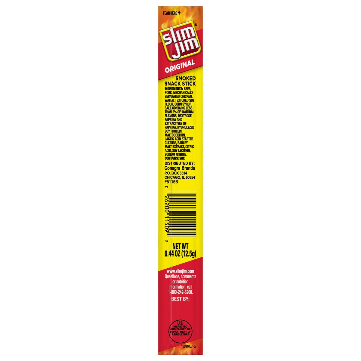 Beef, Pork, Mechanically Separated Chicken, Water, Textured Soy Flour, Corn Syrup, Salt, Contains Less than 2% of: Natural Flavors, Dextrose, Paprika and Extractives of Paprika, Hydrolyzed Soy Protein…