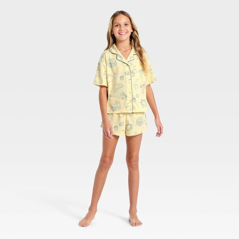 Girls' Breakfast Food Button-Down Pajama Set - art class™ Yellow S