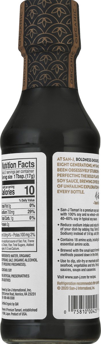 San-J Organic Tamari Soy Sauce Gluten Free Reduced Sodium - 10 Fl. Oz.