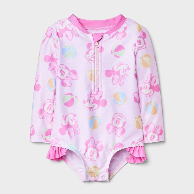 Disney Baby Girl's Minnie Mouse Beach Ball 1pc Rash Guard Swimsuit - Light Pink 6M