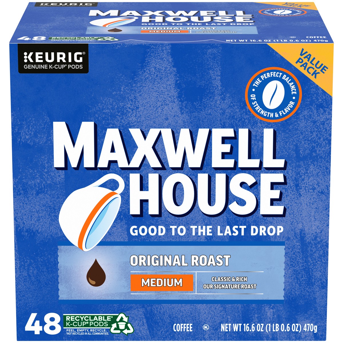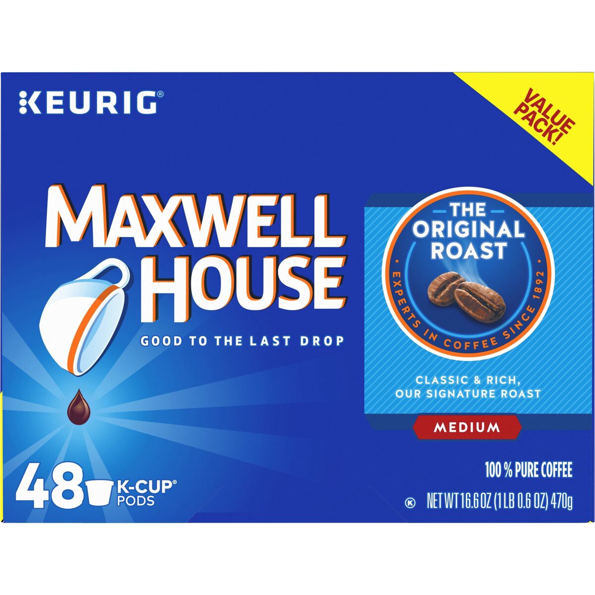 - 48 ct box of Maxwell House Original Roast Medium Roast K-Cup Coffee Pods