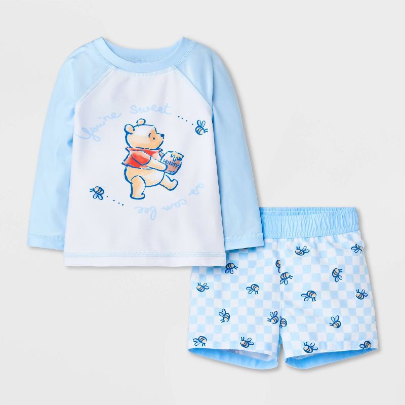 Disney Baby Boys' Winnie the Pooh Bees 2pc Rash Guard Swimsuit - Light Blue 6M