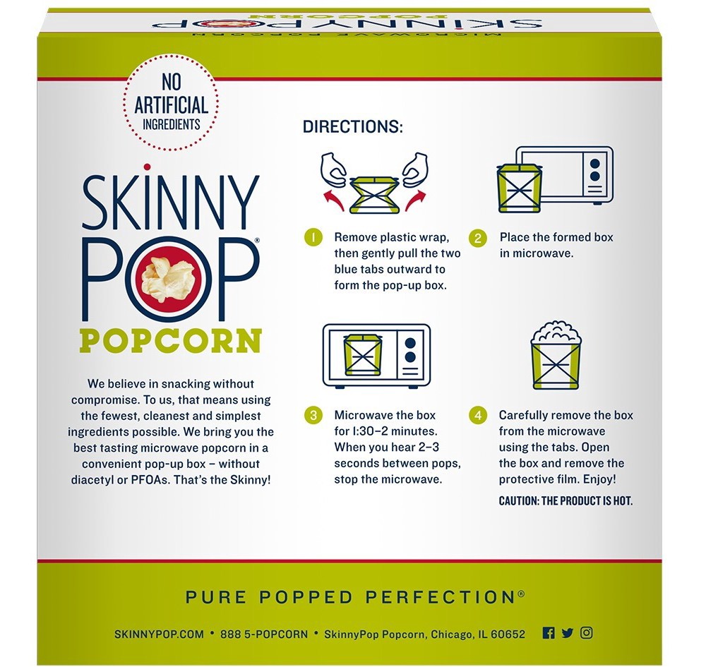 1. Remove plastic wrap, then gently pull the two blue tabs outward to form the pop-up box. 2. Place the formed box in microwave. 3. Microwave the box for 1:30-2 minutes. When you hear 2-3 seconds betw…