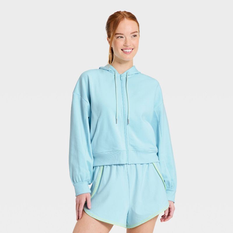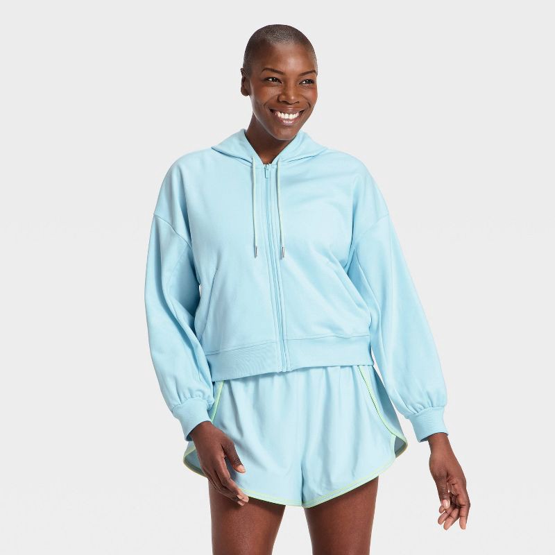 Women's French Terry Full Zip Sweatshirt - All In Motion™ Light Blue XL