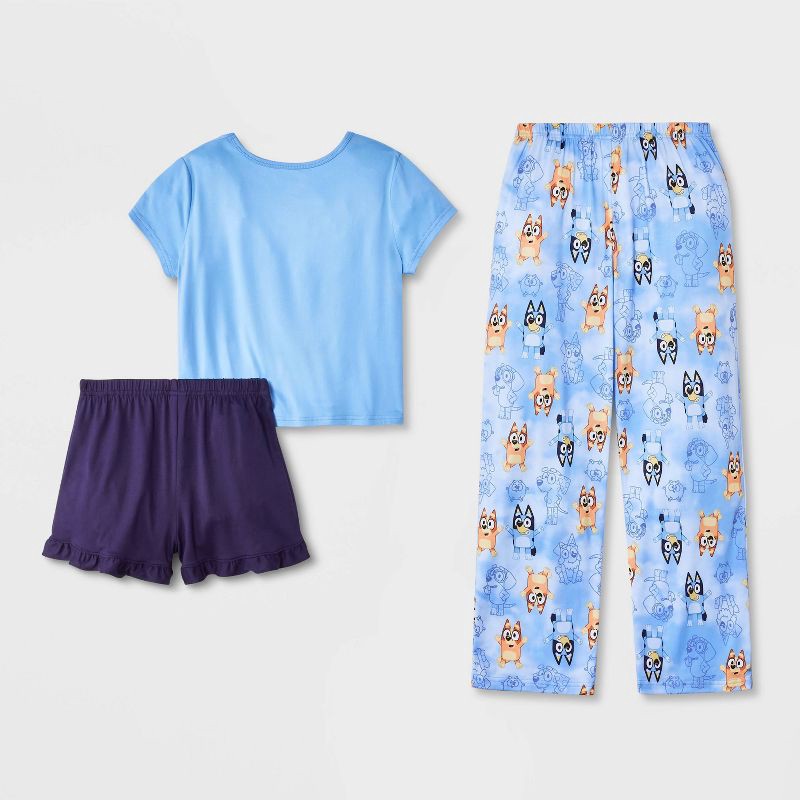Girls' 3pc Bluey Short Sleeve Pajama Set - Blue M