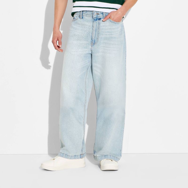 Classic-rise jeans made from cotton-recycled cotton blend to keep you cool and comfy. The fly button and zipper closure provides a snug fit while the baggy legs offer roomy comfort for ease of movemen…