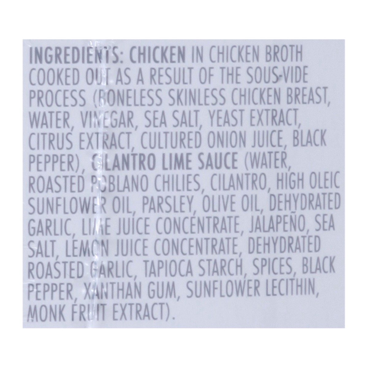 Chicken in Chicken Broth Cooked Out as a Result of the Sous-Vide Process (Boneless Skinless Chicken Breast, Water, Vinegar, Sea Salt, Yeast Extract, Citrus Extract, Cultured Onion Juice, Black Pepper)…