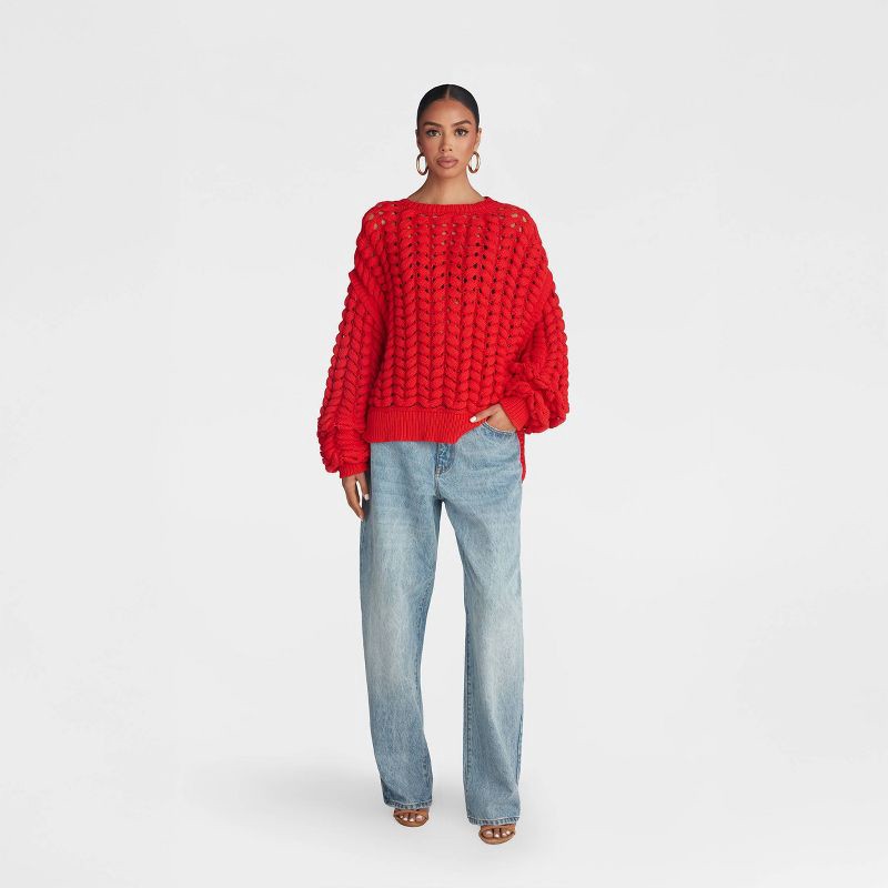 KBB by KAHLANA Women's Pullover Sweater 'The Chunky Knit Crew' - Red XS