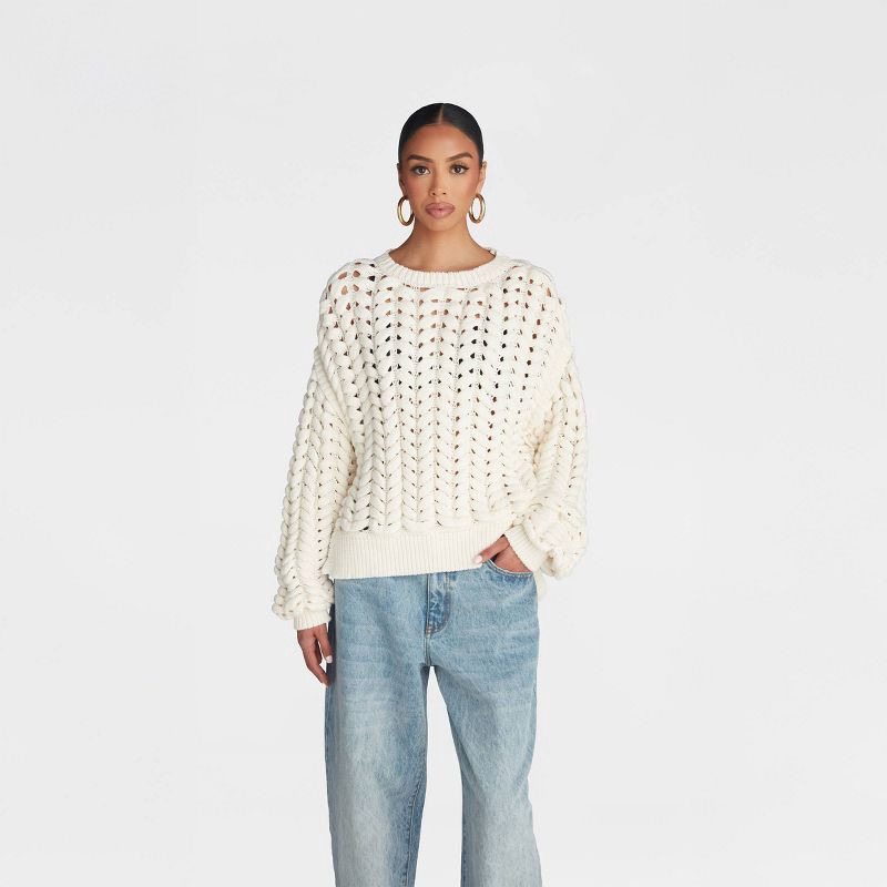 slide 1 of 3, KBB by KAHLANA Women's Pullover Sweater 'The Chunky Knit Crew' - Cream M, 1 ct